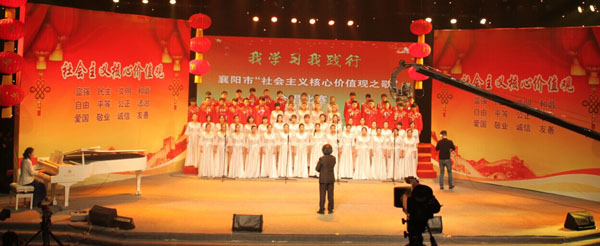 2014年初,為進一步強化社會主義核心價值觀宣傳教育,襄陽市委宣傳部、市音樂家協(xié)會組織我市優(yōu)秀詞曲創(chuàng)作人員,創(chuàng)作了13首《社會主義核心價值觀之歌》系列歌曲。圍繞該系列歌曲,全市各機關(guān)、學校、企事業(yè)單位、社區(qū)、農(nóng)村廣泛開展了教唱、學唱、傳唱活動,累計達到1000多場次。各地還通過廣播電視、網(wǎng)絡(luò)高頻次播放13首系列歌曲,有力傳播著先進文化。