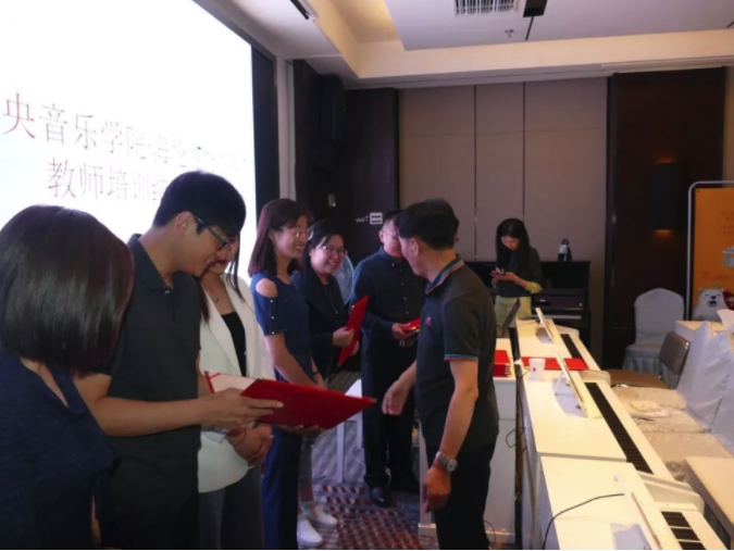 課程結(jié)束后,山東省藝術(shù)培訓(xùn)行業(yè)協(xié)會(huì)鍵盤專業(yè)委員會(huì)副會(huì)長(zhǎng)趙春雷向首批評(píng)審合格的學(xué)員們頒發(fā)了由中央音樂(lè)學(xué)院和海倫鋼琴股份有限公司聯(lián)合簽署的教師資格證書。會(huì)場(chǎng)內(nèi)響起一片熱烈的掌聲!