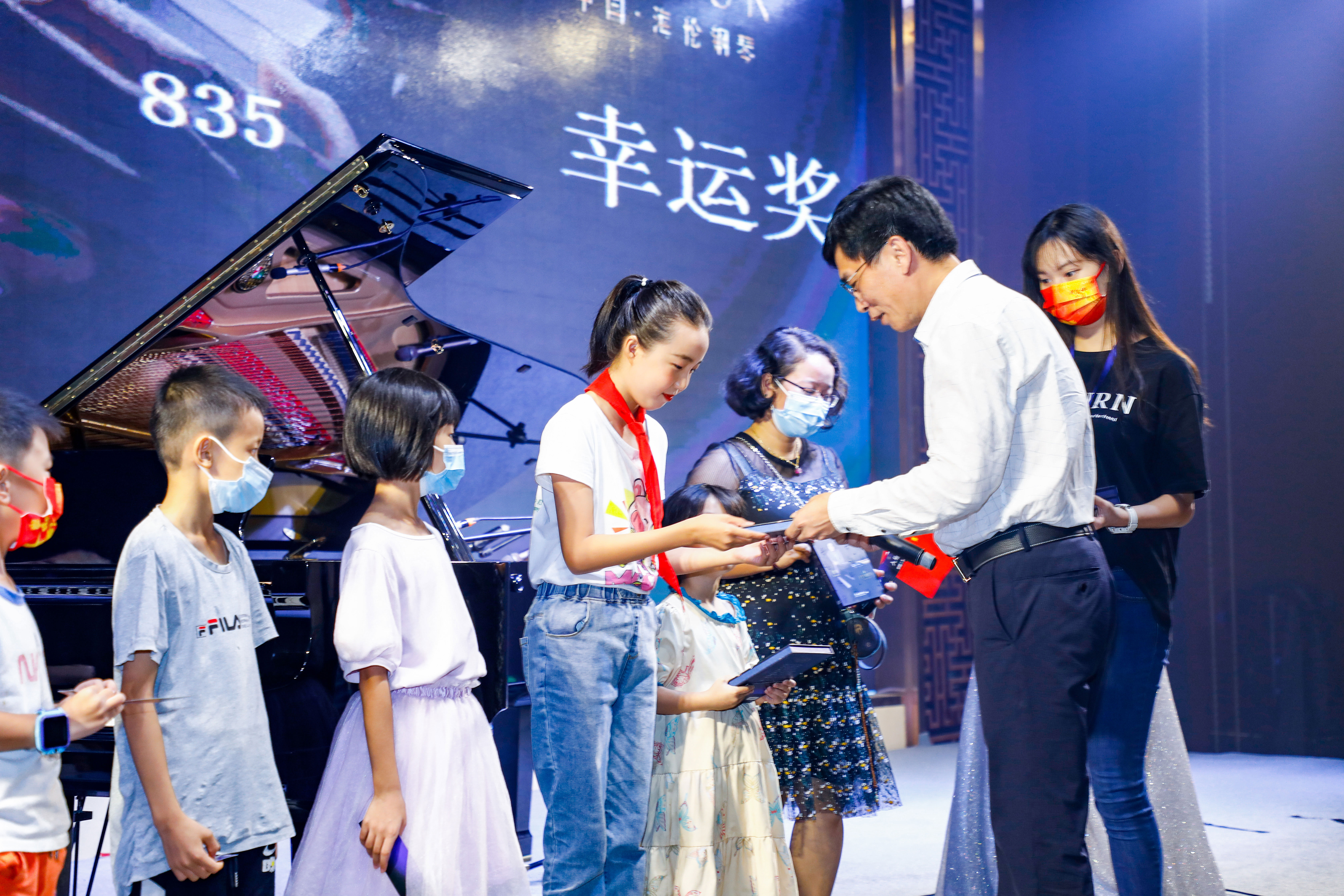 ▲廣州海倫鋼琴公司總經理為獲獎觀眾頒發流行鋼琴家蔡領個人專輯
