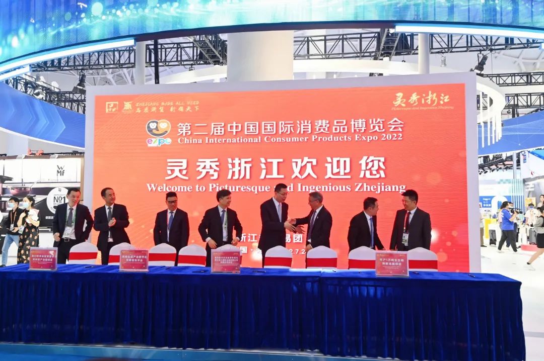 本屆消博會上,浙江主題館以“靈秀浙江”為主題,以“擁抱八方、薈聚浙里”為設計理念開設浙江館,全方位展示浙江“高、新、優、特”消費精品。