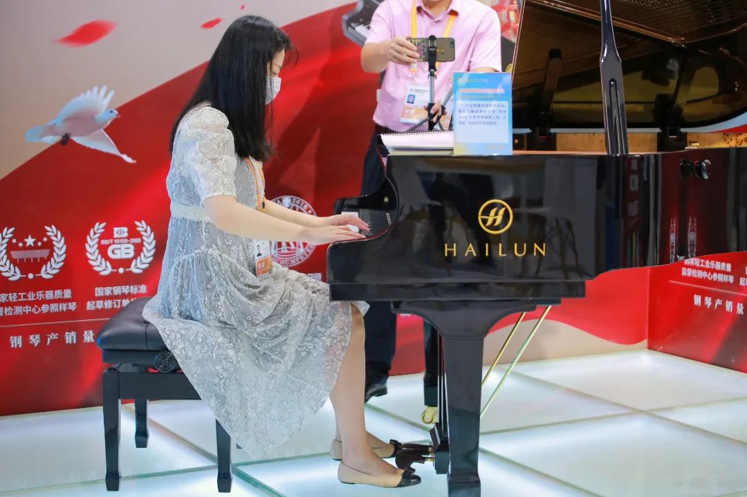 為推動中國智造優質產品更好走向世界,作為國內上市樂器制造企業之一,海倫鋼琴此次展出了HG161三角鋼琴,展覽期間,海倫鋼琴受到了觀展者的喜愛與歡迎,眾多觀展者在海倫HG161三角鋼琴展位前駐足傾聽。