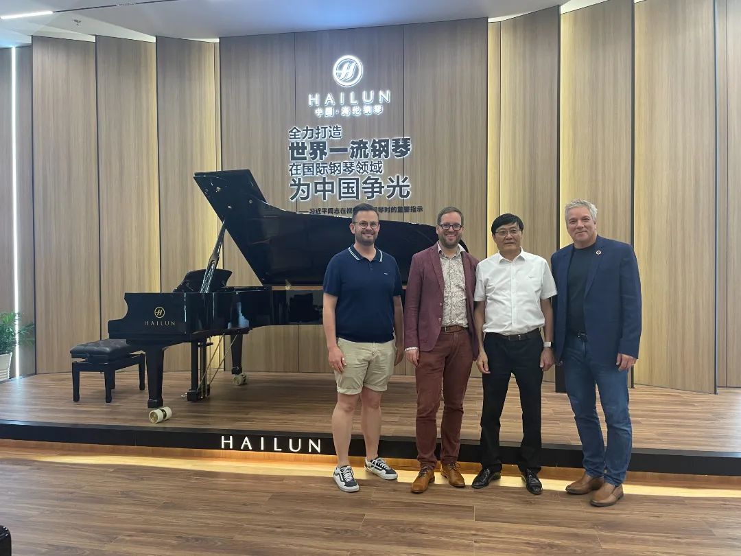 近日,世界國際音樂比賽聯(lián)盟(WFIMC)的董事會成員雅克·馬奎斯、馬可斯·巴克、羅伯·希爾布林克蒞臨海倫鋼琴參觀交流。海倫鋼琴董事長陳海倫,海倫鋼琴董事、副總經(jīng)理陳斌卓對三位董事會成員的來訪表示熱烈歡迎和親切問候。