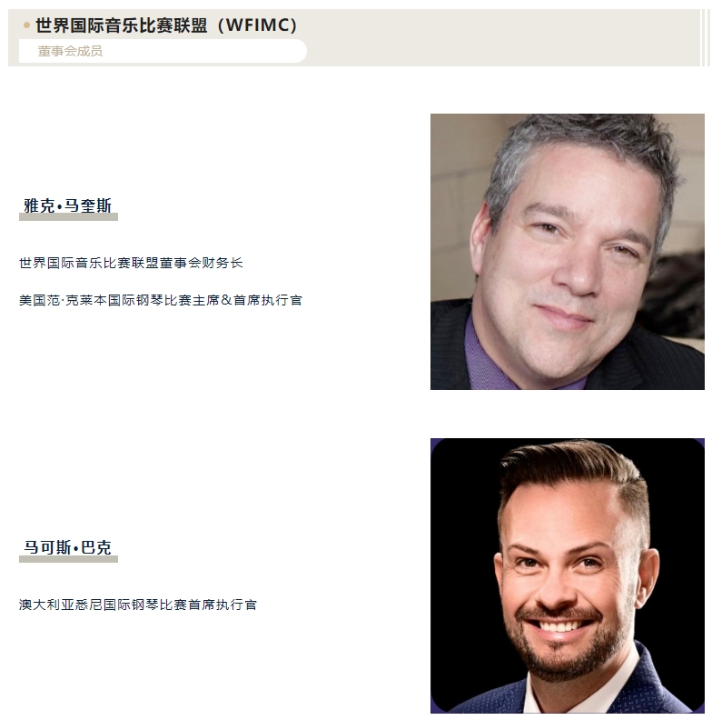 世界國際音樂比賽聯(lián)盟(簡稱:WFIMC)成立于1957年。總部設(shè)在瑞士日內(nèi)瓦,是聯(lián)合國教科文組織國際音樂理事會的成員。目前由包括日內(nèi)瓦國際音樂比賽、伊麗莎白女王音樂比賽、肖邦國際鋼琴比賽、范·克萊本國際鋼琴比賽、慕尼黑ARD國際音樂比賽等在內(nèi)的100多個國際知名音樂比賽和機構(gòu)組成。