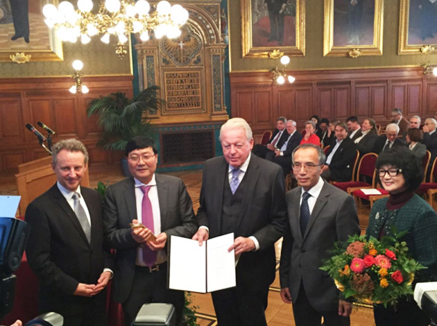 央視報道:海倫鋼琴董事長陳海倫及夫人金海芬榮獲奧地利“尚彼得獎”